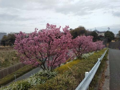 桜がほぼ満開になりました、少し散り始めています。 桜の根元の黄色い花と白い花がいいアクセントになってよりきれいです。