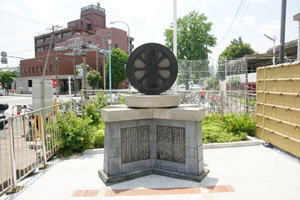 2013-06-08 京急東急ウォーク イベント ウォーク 京急ウォーク 地図をよく見ていなかったので道の右と左の歩くのを間違えました。横断歩道がなく、車道を渡ってしまいました。ゴールはもうすぐの川崎大師駅の脇に、京急の発祥の碑がありました。