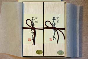 2015-07-01 ふるさと納税の五三焼カステラ ふるさと納税 ふるさと納税のサイトを見ていてふとカステラを貰おうと思い立ちました。パートナーの大好物なので。長崎の時津町に申し込みをしたら、五三焼カステラが届きました。木箱入りのりっぱなカステラです。すぐに1本食べてしまいました。
