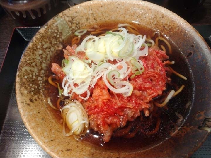 今日の朝ご飯は三松のかけそば370円に紅しょうが天130円のトッピングです。